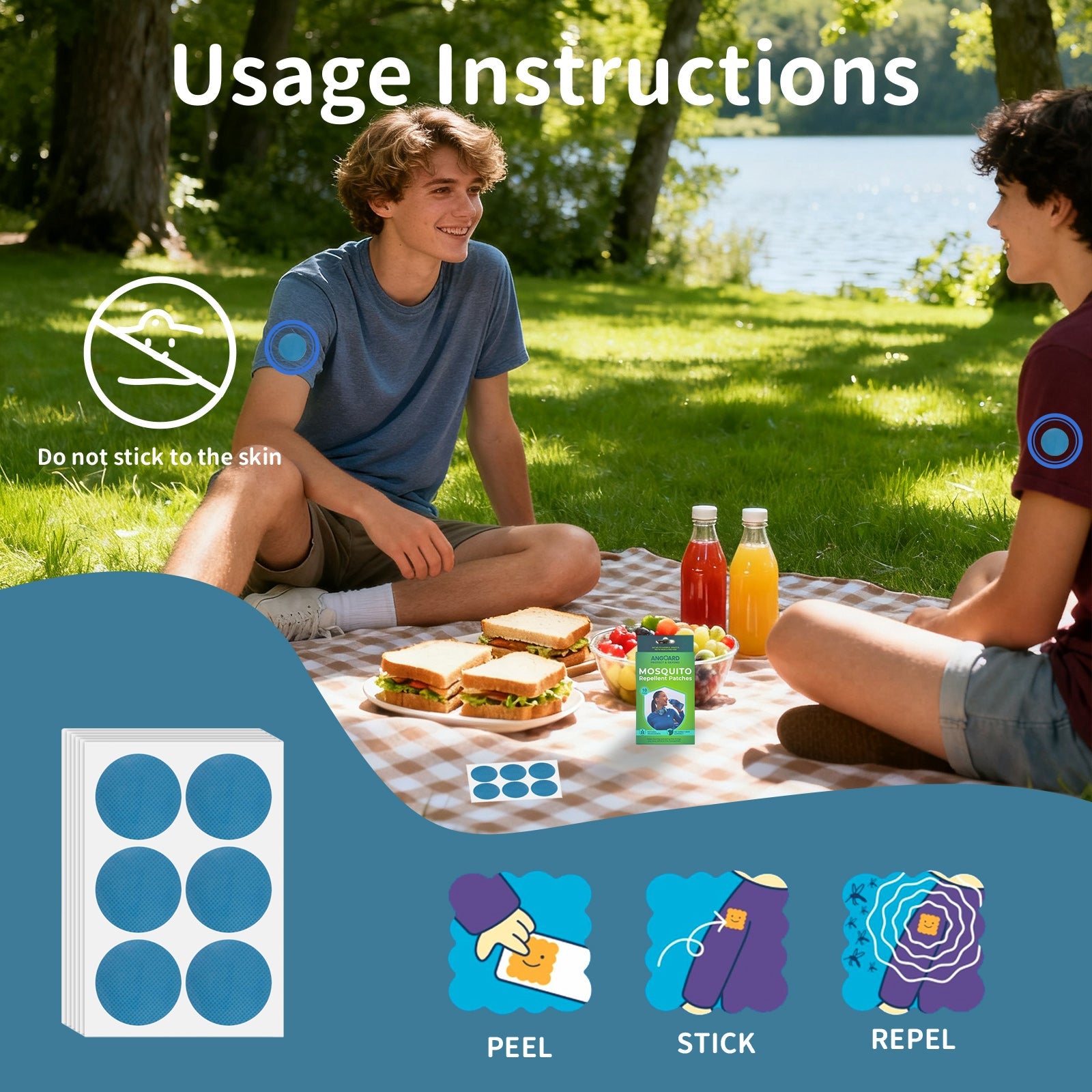 Each patch adheres securely to your clothing, hat, or backpack — keeping you bite-free without any direct skin contact. Lightweight and convenient, they’re perfect for camping, hiking, sports, and picnics.
