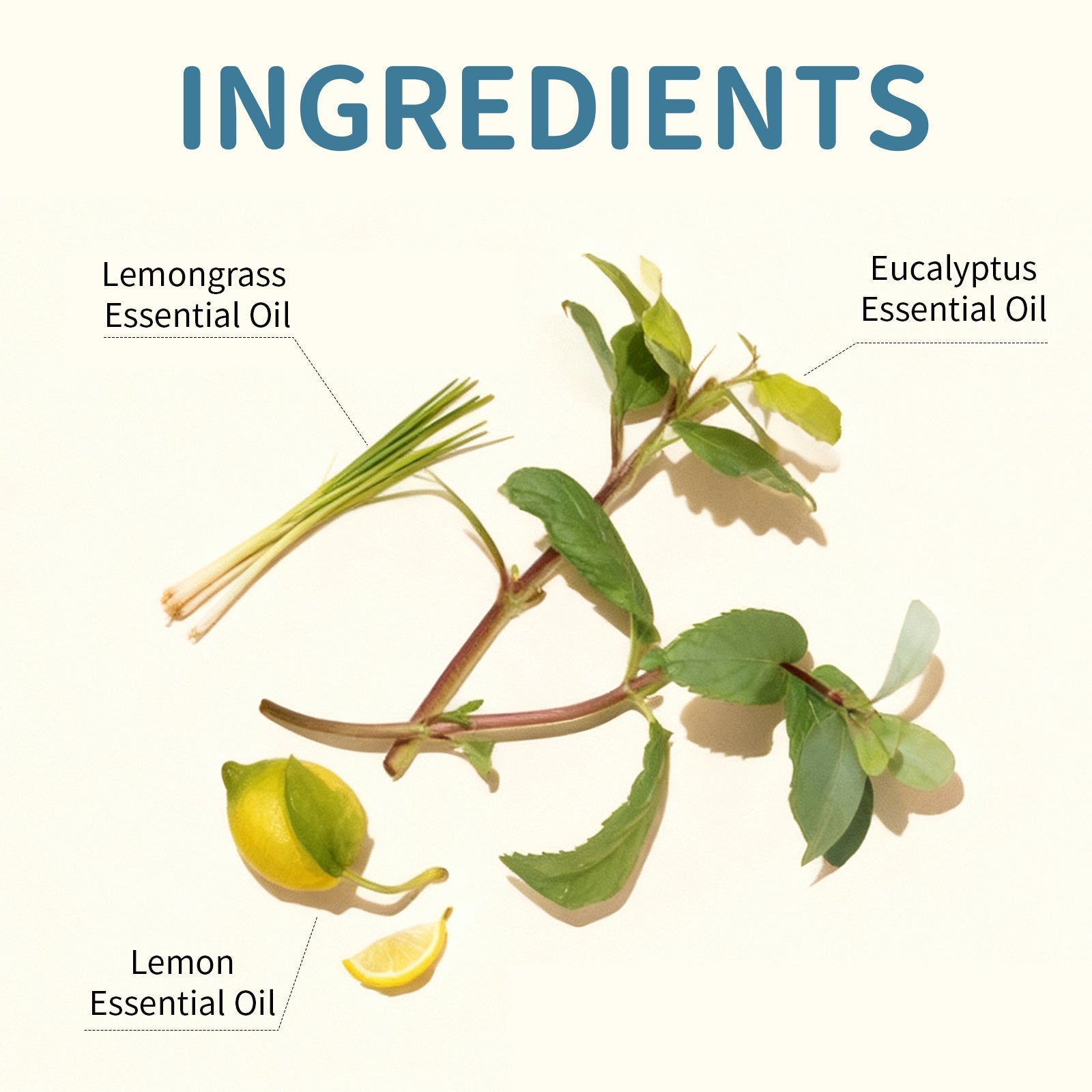 Natural Ingredients: Lemongrass, lemon, and eucalyptus essential oils