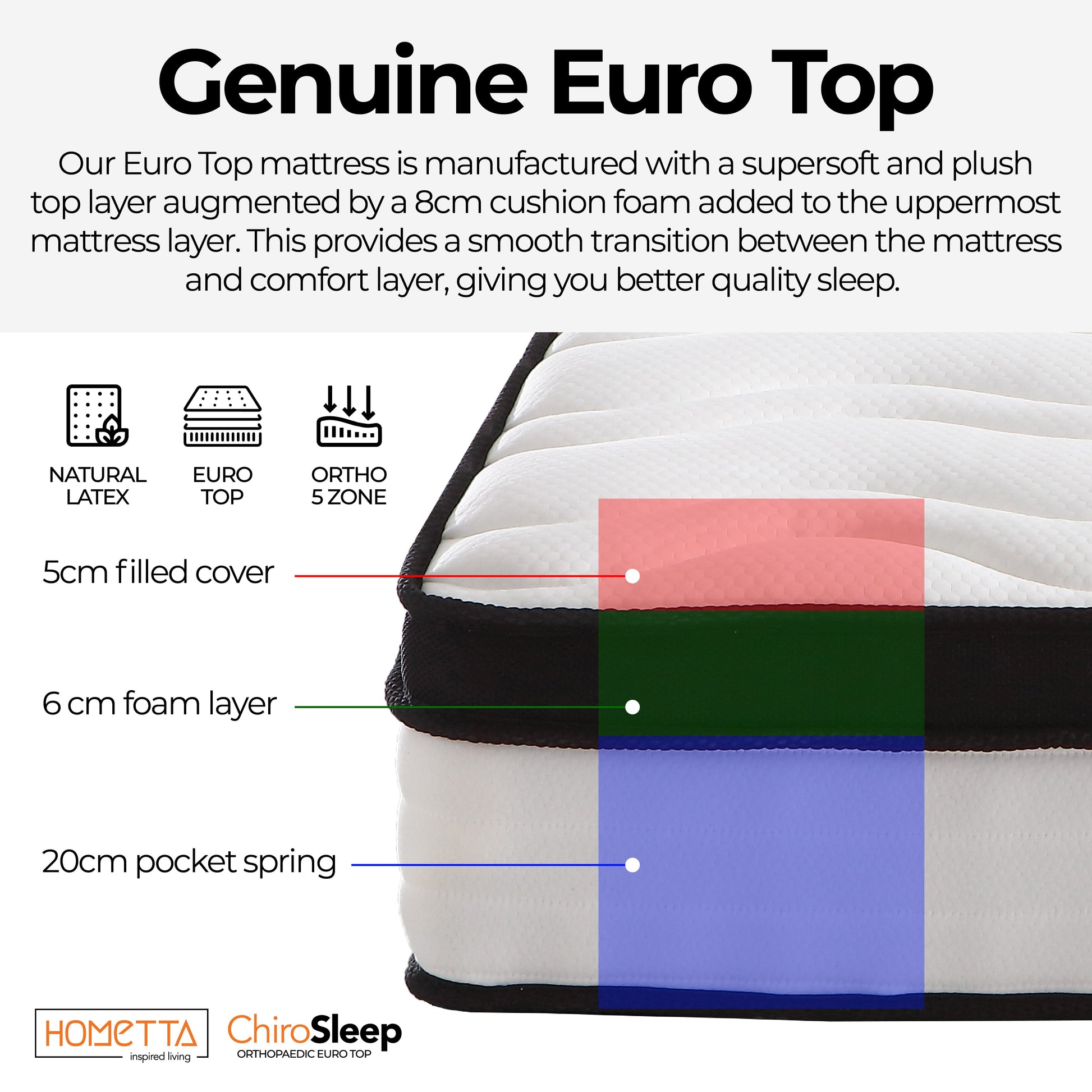ChiroSleep Orthopaedic Euro Top Pocket Spring Single Mattress