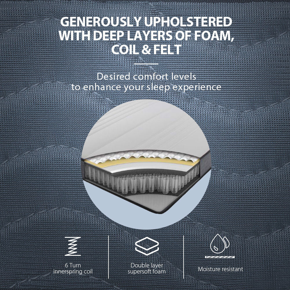 Be relieved from lifes strains and wake up feeling refreshed from total remedial comfort. Order a Kingston Slumber Bonnell Innerspring Mattress today!