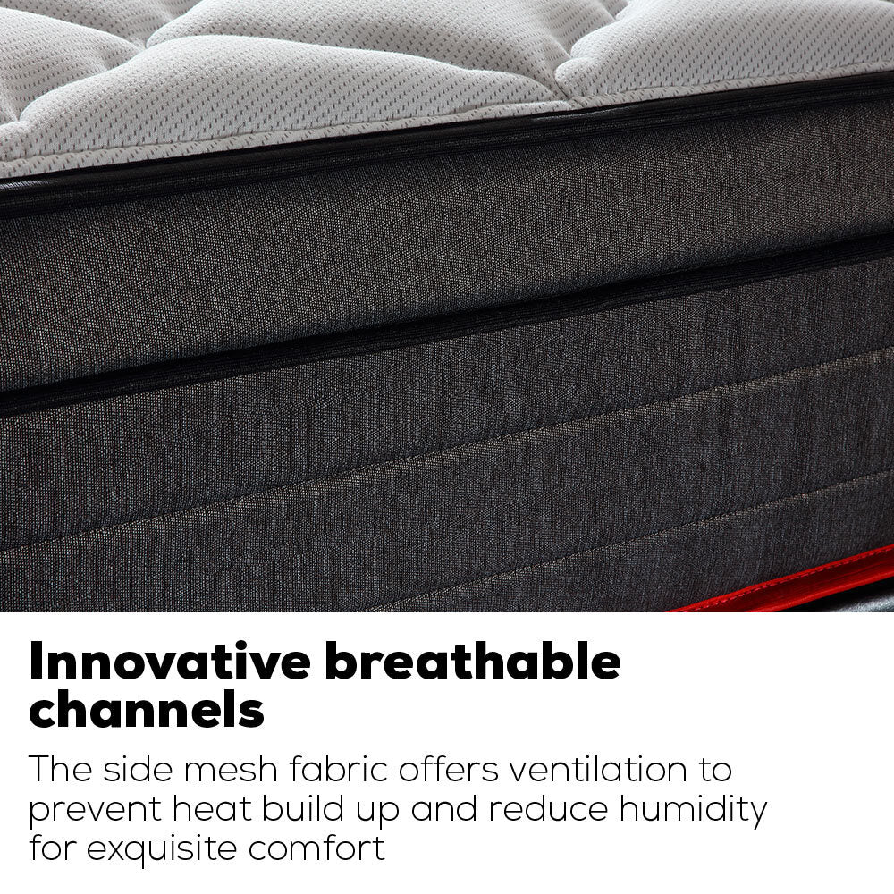Kingston Slumber mattresses come with 6 Coil-9 Zone thick banded pocket springs that ensure you experience the most tranquil sleep. When you change position, the cushioning EuroTop exterior lining allows for an effective flow of air in and out of the mattress. All these features work in harmony to deliver a state-of-the-art therapeutic mattress solution that will provide consistency in your sleep cycle well into the future.